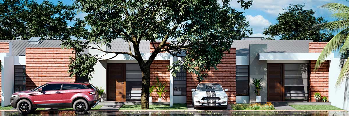 • CARACTERÍSTICAS POR CASA: 3 dormitorios, 2 baños, cocina amoblada, living comedor, área de servicio, patio pequeño – garaje